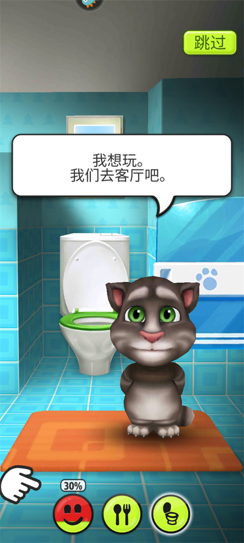 4、除了吃饭和方便之外,你还可以和汤姆猫游玩,游玩需要点击笑脸图标;