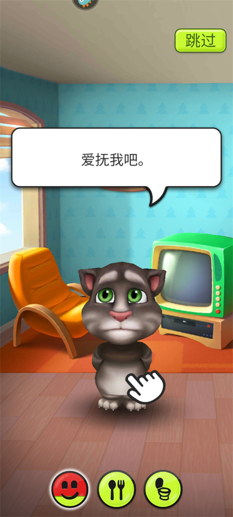 5、长时间不和猫咪玩,猫咪的情绪会低落,你可以通过点击或者滑动屏幕的方式来爱抚汤姆猫。