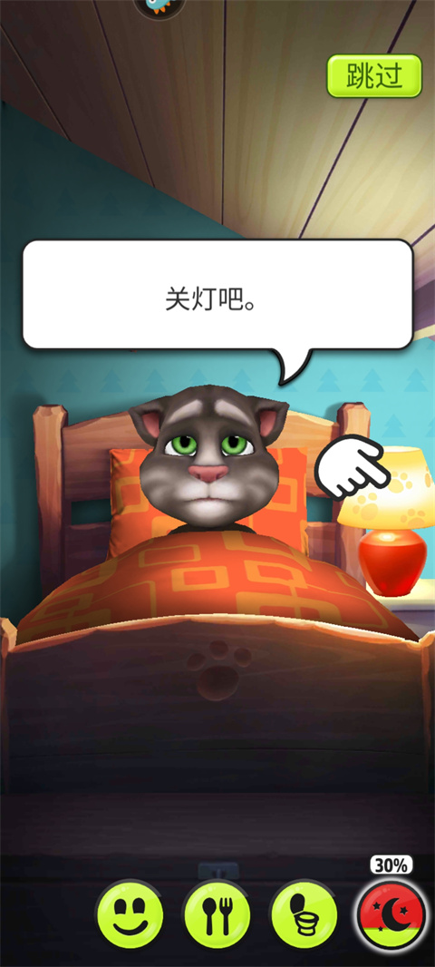 7、点击台灯后汤姆猫就会睡觉,这样就算结束了基本的一天。