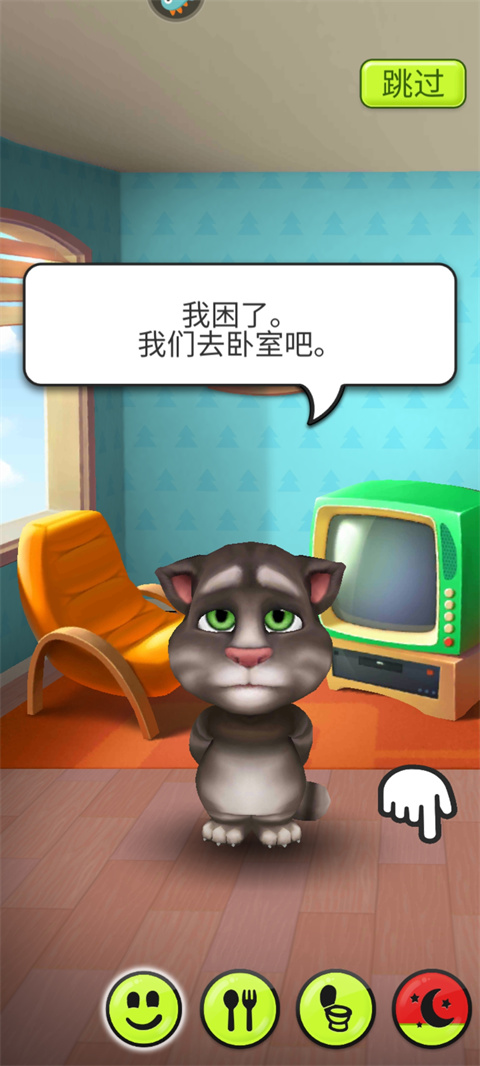 6、玩累了汤姆猫是需要睡觉的,你需要点击月亮图标前往卧室;