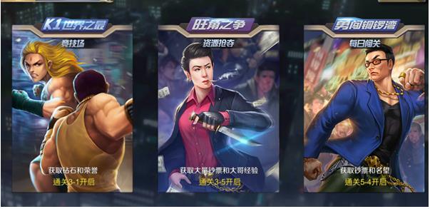 进入都市英豪游戏的挑战界面,可以看到三个板块,分别是:“K1世界之最:竞技场”、“旺角之争:资源抢夺”、“勇闯铜锣湾:每日闯关”,如下图。这些挑战关卡想要通关也是很容易的,当然,这需要掌握一些技巧,下面一起来看看吧: