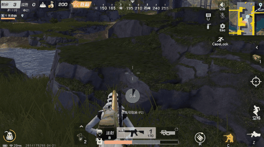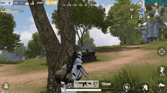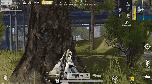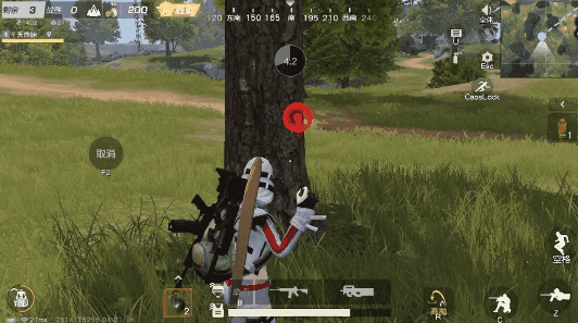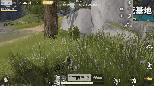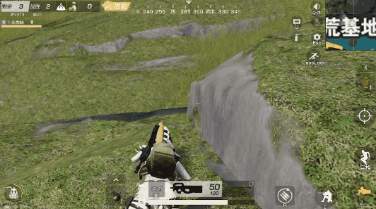 即便是细心谨慎的小雷趴在圈边也难免遇上眼尖的对手,当忽然遭遇远处对手的火力重击时,左右横跳的走位可有效规避伤害,接着迅速转移至附近安全的掩体后。