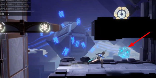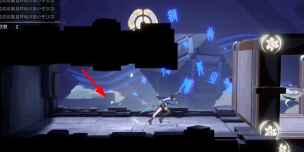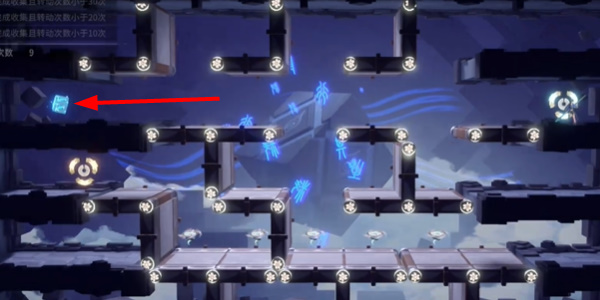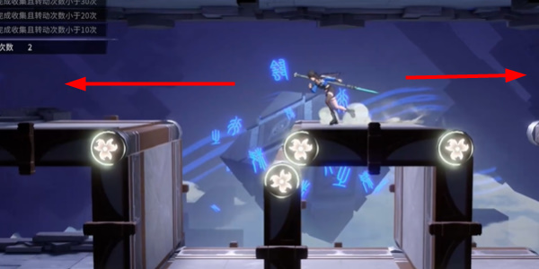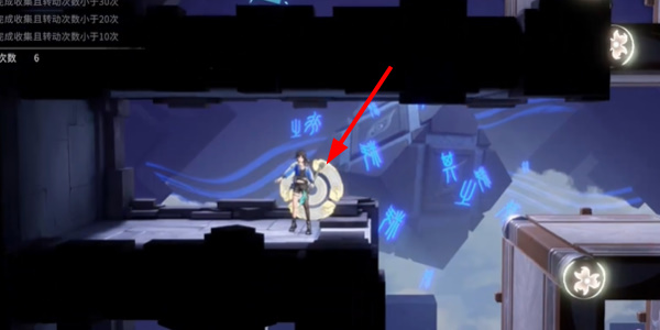 7、拾取右边的道具后回来操作机关,在左边的位置转动两次