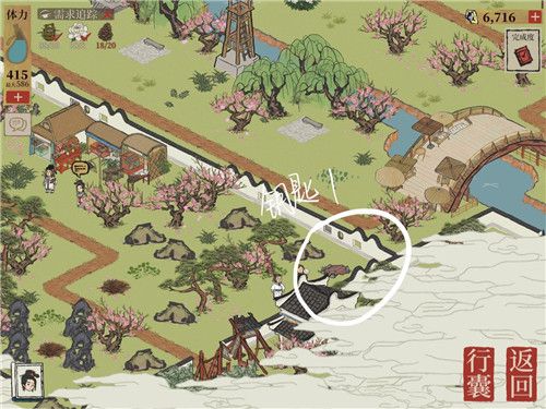 1、首先来到鸟鸣居旁边,如图所示,即可找到第一把钥匙。