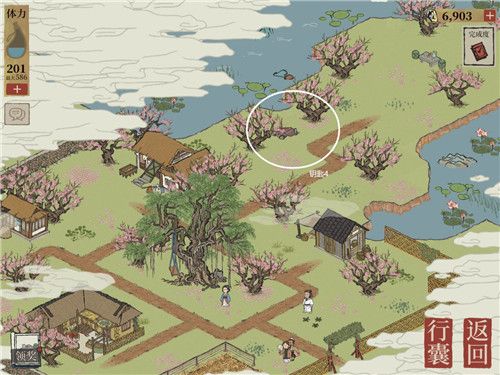 4、最后来到酿酒坊后面,如下图所示的桃树中间,即可找到第四把钥匙。