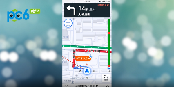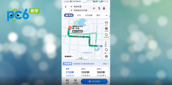 4.确定线路之后,点击开始导航按钮,高德地图即可进入导航模式了。