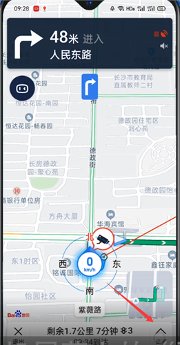 找到想要导航的位置后,就会进入导航的屏幕了,