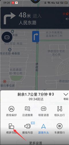 在弹出的更多菜单中,我们点击“横屏导航,这个时候百度地图的导航模式有变成横版了