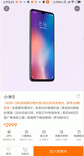 小米9普通版售价为2999元起 ,小米9尊享版售价为3999元。