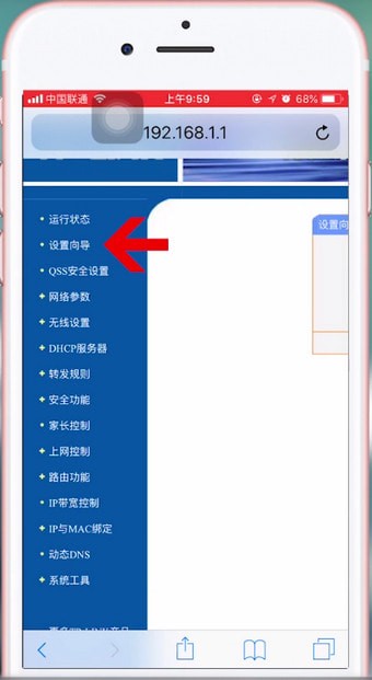 5.进入路由器后台设置,手机屏幕字体小,看不清楚的话,可以双击屏幕来进行界面放大。下面步骤就和在电脑上设置路由器一模一样了。打开设置向导