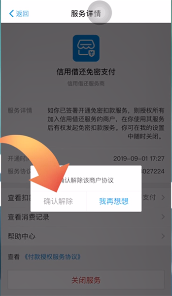 第三步:点击进入之后即可看到用户签约的连续包月服务,点击需要关闭的省钱卡服务,然后点击关闭服务再点击确认解除即可。