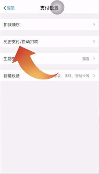 第二步:点击支付设置,这时点击免密支付/自动扣款功能,