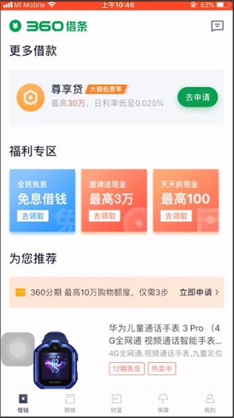 360借条是360金融旗下个人及小微信贷平台,上线于2016年9月,基于360大数据对客户信用进行评估,并在此基础上提供即时到账的消费贷款。