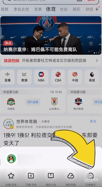 第一步:进入uc浏览器,点击底部菜单。