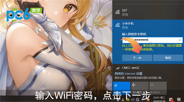 输入WiFi密码,点击下一步,根据需求选择是否让其他设备发现自己的设备,WiFi就连接成功了。