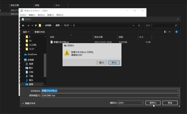 3.点击txt文本右上方的文件选项,随后选择将txt文件另存为到一个文件夹中,点击另存为选项下方的编码选项,将txt文件的编码设置为ansi编码,只有设置这个编码才能不让生成的文件夹出现乱码。