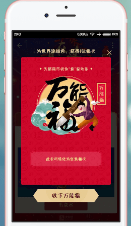 另外还有一张叫做“万能福”,顾名思义拥有这张福卡的小伙伴可以将它转换为“五福”之中你所缺少的任意一张福卡。