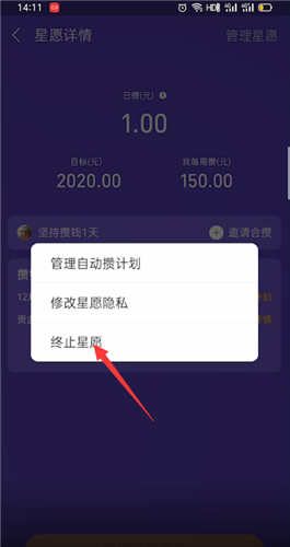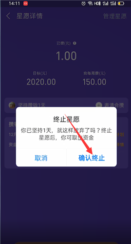 选择终止星愿并确认终止,