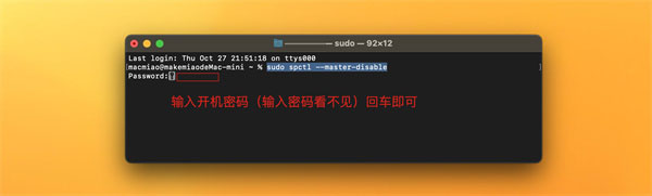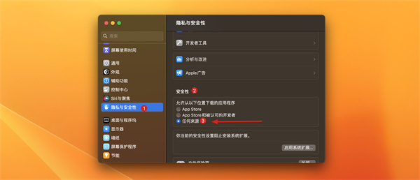 注意!如果没有「任何来源」选项,我们打开终端(command+空格 聚焦搜索:终端),复制以下命令粘贴到终端: