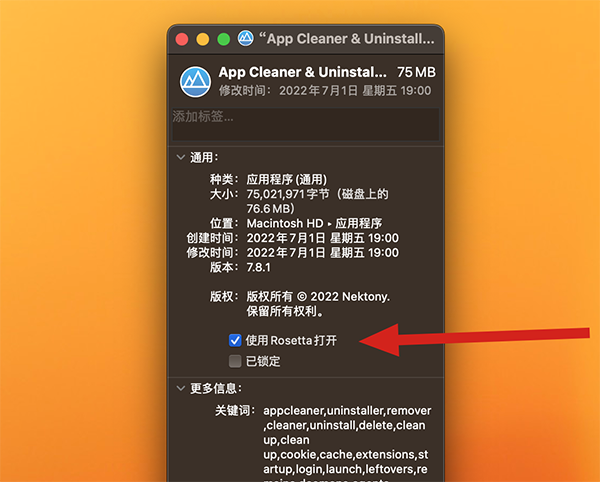 个别通用应用在 M1/2芯片 的 Mac 上运行时如果闪退,那么就要在显示简介窗口中,手动勾选 使用Rosetta打开 才可正常运行,如果没有往下看。