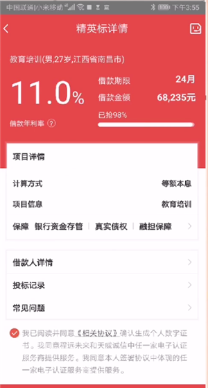 宜人财富就是宜人贷的理财端,宜人贷作为中国第一家赴美上市的P2P公司,其平台背景实力还是比较靠谱的。当前宜人财富可以投资的项目为精英标,年化利率在12%左右,期限从24个月至36个月不等,并且每个项目的金额都遵循小额分散的原则,从这三点分析来看,宜人财富还是比较靠谱的。