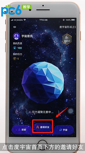 进入度宇宙App首页,点击页面下方【邀请好友】按钮;