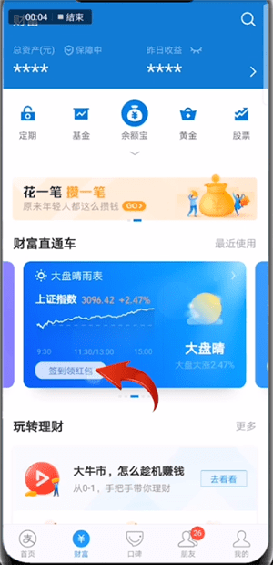 支付宝大盘晴雨表奖励红包可以在多种支付场合使用,而且红包可以拆开来使用,本期教学就告诉大家支付宝大盘晴雨表在哪。