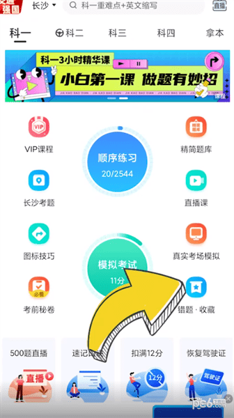 驾考宝典收藏的题在哪里看分为两步,考试页面可以查看收藏的题,以下为具体操作步骤: