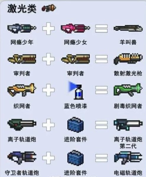 强化突击步枪+审判者/仲裁者/碎冰者/可恶激光枪=突击步枪战术精英版(晕/电/冰/毒)