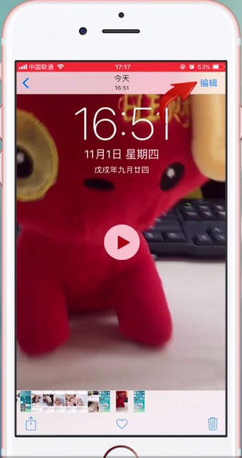 1.首先打开苹果手机系统【相册】,然后选择你要剪辑的视频,点击右上角【编辑】