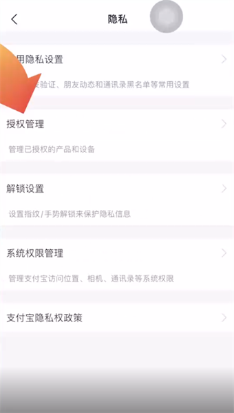 第二步:点击隐私功能,再点击授权管理选项,