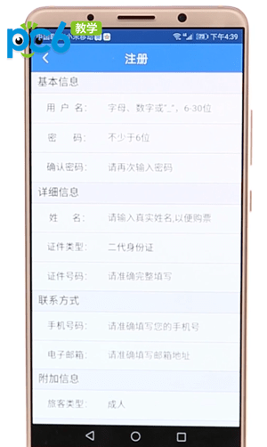 注册铁路12306 App需要填写基本信息,包括用户名、密码等。