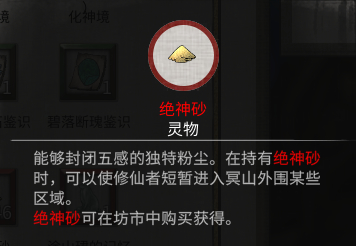 1、要想进入陨幽谷,必须获取绝神砂,是屏蔽的道具;