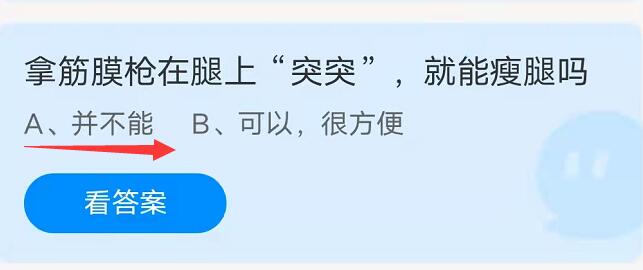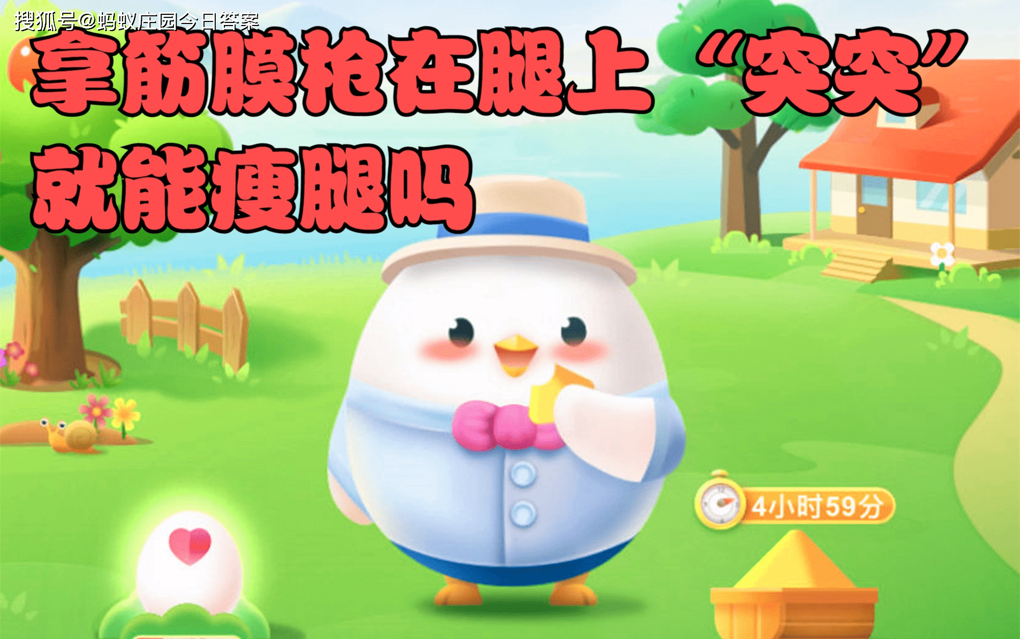 支付宝蚂蚁庄园小课堂11月26日的其中一个问题是:拿筋膜枪在腿上“突突”,就能瘦腿吗?这道题考察健身减肥知识,下面一起来看一下蚂蚁庄园11月26日的正确答案吧。