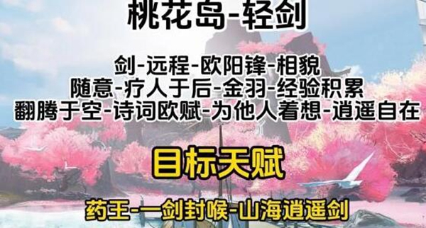 2、桃花岛轻剑:天赋是药王、一剑封喉、山海逍遥剑;