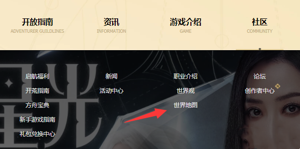 (1)首先进入命运方舟官网,在导航栏找到世界地图并点击进入;