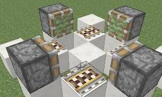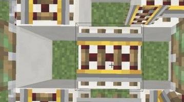 1、首先摆一个5x5大小的建筑,并且在中间位置放上铁轨,在铁轨的旁边放上粘性活塞,如下图所示。