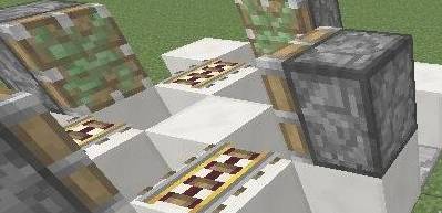 2、然后每个活塞直接要用中继器连接,如下图所示