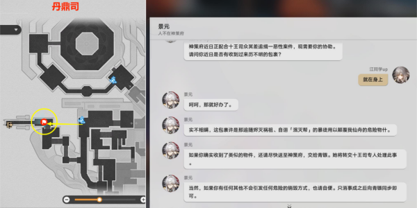 2、接着需要来到丹鼎司的海边,之后玩家会收到景元的短信;