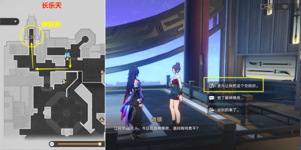 3、随后玩家需要来到神策府找到青镞对话,选框选择景元让我把这个交给你;