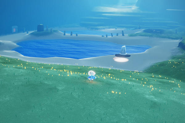 3、在池塘边上就是幽光山洞冥想点的,打坐即可完成冥想任务。