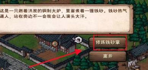 4、了解铁砂掌的相关知识,点击修炼铁砂掌。