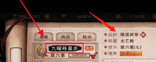 6、再点击轻功,激活九曜移星步后即可学习太乙镇派武学。