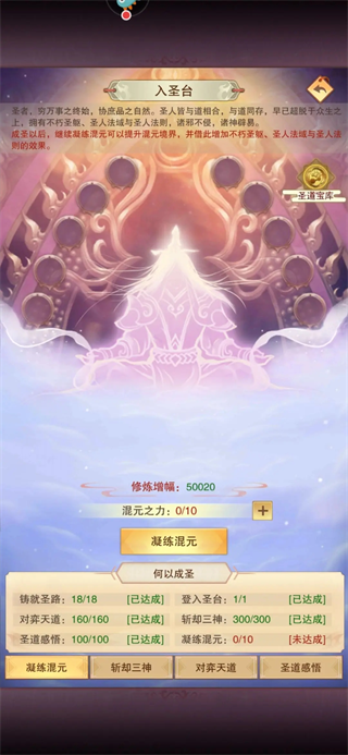 准圣5可以进行圣道感悟(每天随机刷在一个圣地里面),差不多每天10亿修为,一共只有100次。