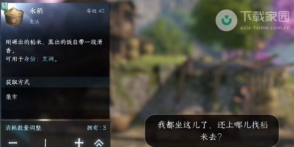 1、首先先传送到桃溪村,到达之后找到在河边的吕豪与之对话并向他出示稻米;