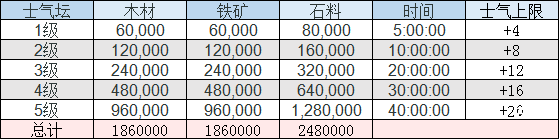 士气坛:提升本城部队士气上线,要求君王殿十级