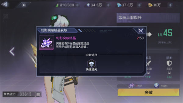 当猎人达到一定等级后,需要我们消耗对应职业的【突破结晶】才能提高猎人等级上限,“突破结晶”的获取主要来自于各种困难副本。