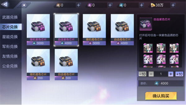 除了猎核副本之外,大家还可以用消耗对应品质的芯片元件来兑换的方式获取芯片。