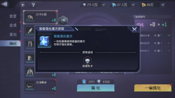 此外,装备的强化需要消耗【装备强化魔方】,这种材料的获取主要来源依然是【深渊挑战】。