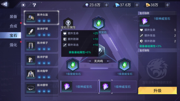 星核需要镶嵌不同职业的星能才能为各职业提供属性加成以及总加成。镶嵌星能和进阶星能,都可以为星核提供额外的能量值,当这些能量总值达到一定条件后,还可以进阶获得更多的属性加成。